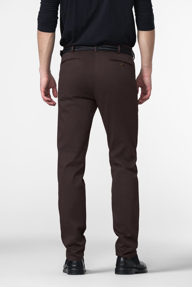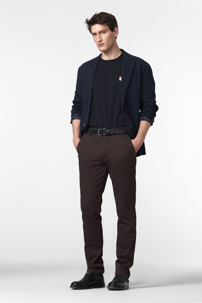 Nämä chinot ovat lämpimät ja ihanan pehmeät, ja sopivat mainiosti viileneviin syyspäiviin. Tyylikkäät ja mukavat housut, jotka täydentävät mitä tahansa asukokonaisuutta olipa sitten kyseessä työ- tai vapaa-aika. Kapea, linjakas Bonn-malli, jonka alisuu koossa 50 on 38cm. Joustava materiaali, jossa myös vyötärö joustaa. Pystymallin taskut edessä, jossa vasemmassa takataskussa vetoketjullinen turvatasku. Takana napilliset takataskut.